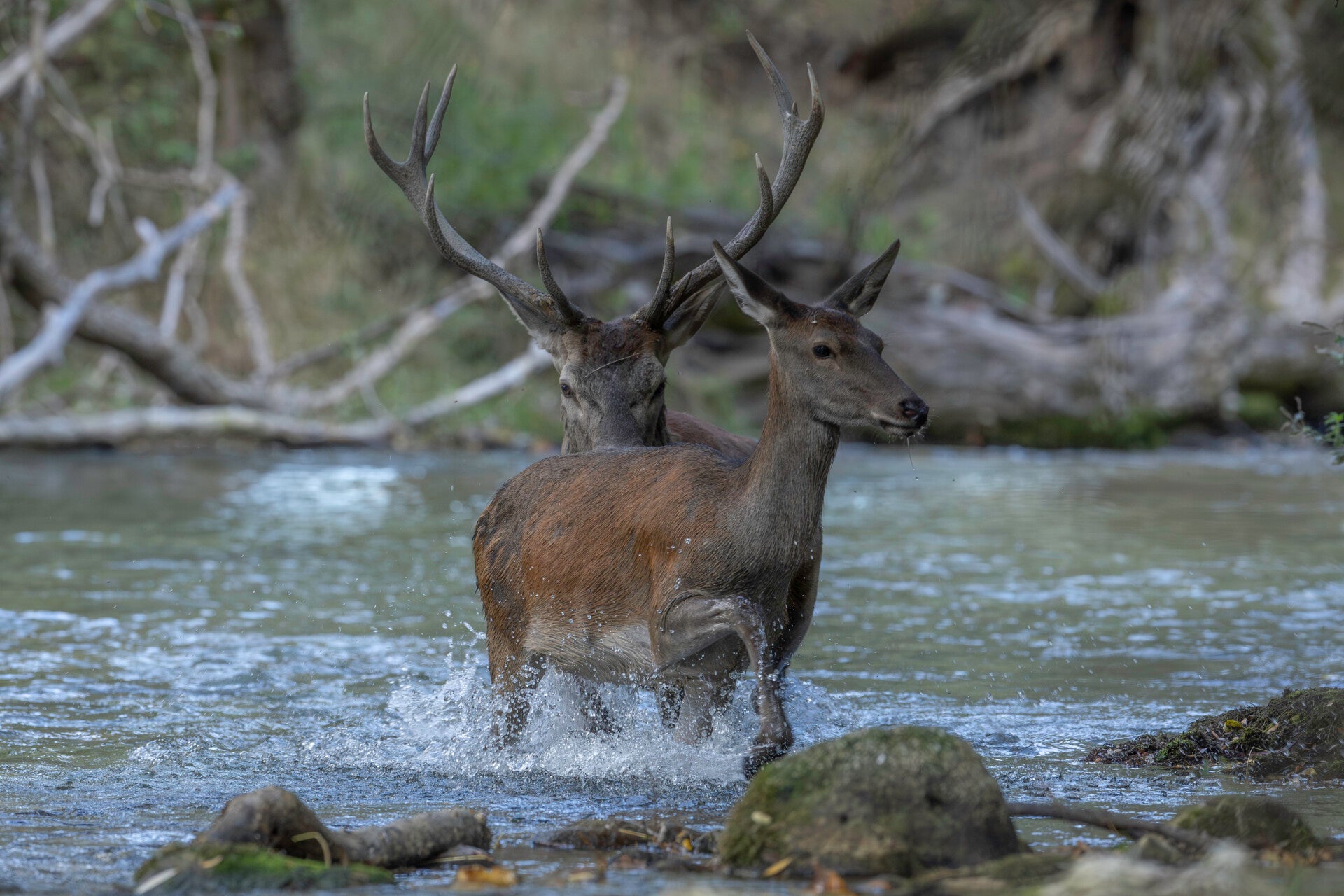 Cerf se désaltérant au bord de la rivière - Viletta barrera